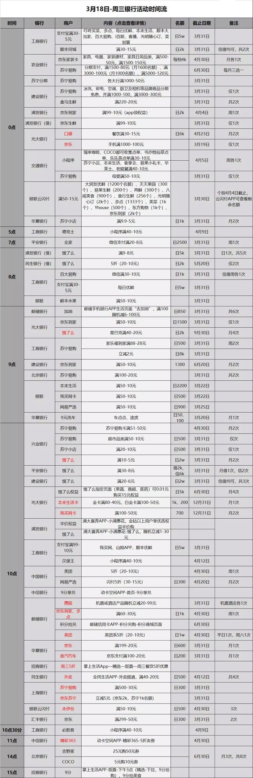 3.18各大银行薅羊毛