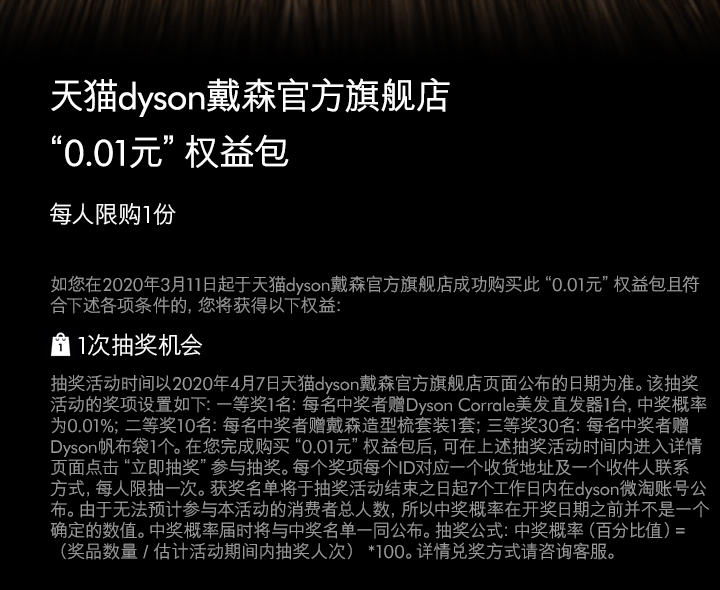 戴森旗舰店,0.01元,抽奖活动
