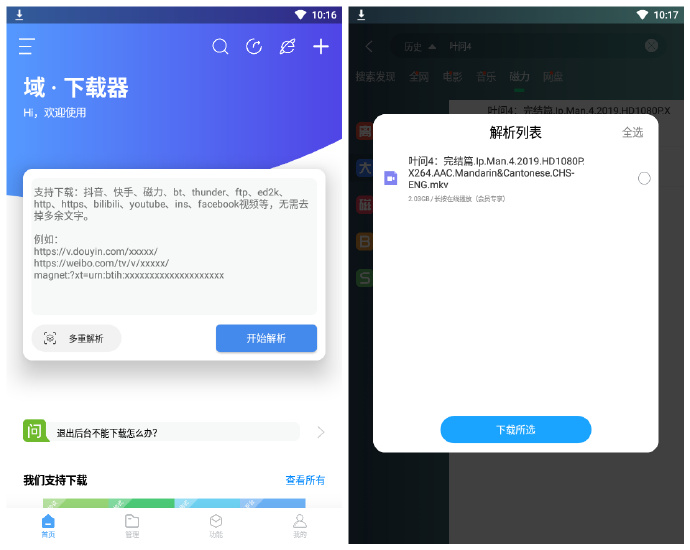 直接将需要下载的内容链接粘贴到解析方框中,点击 “ 开始解析 ” 即可。在主页面上方有三大功能,