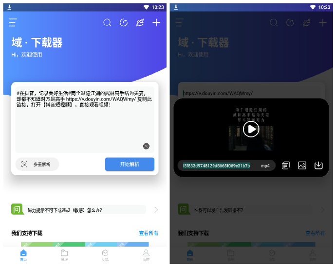 第二大功能:支持抖音、快手、火山、西瓜、美拍、微博、小红书等短视频平台无水印下载