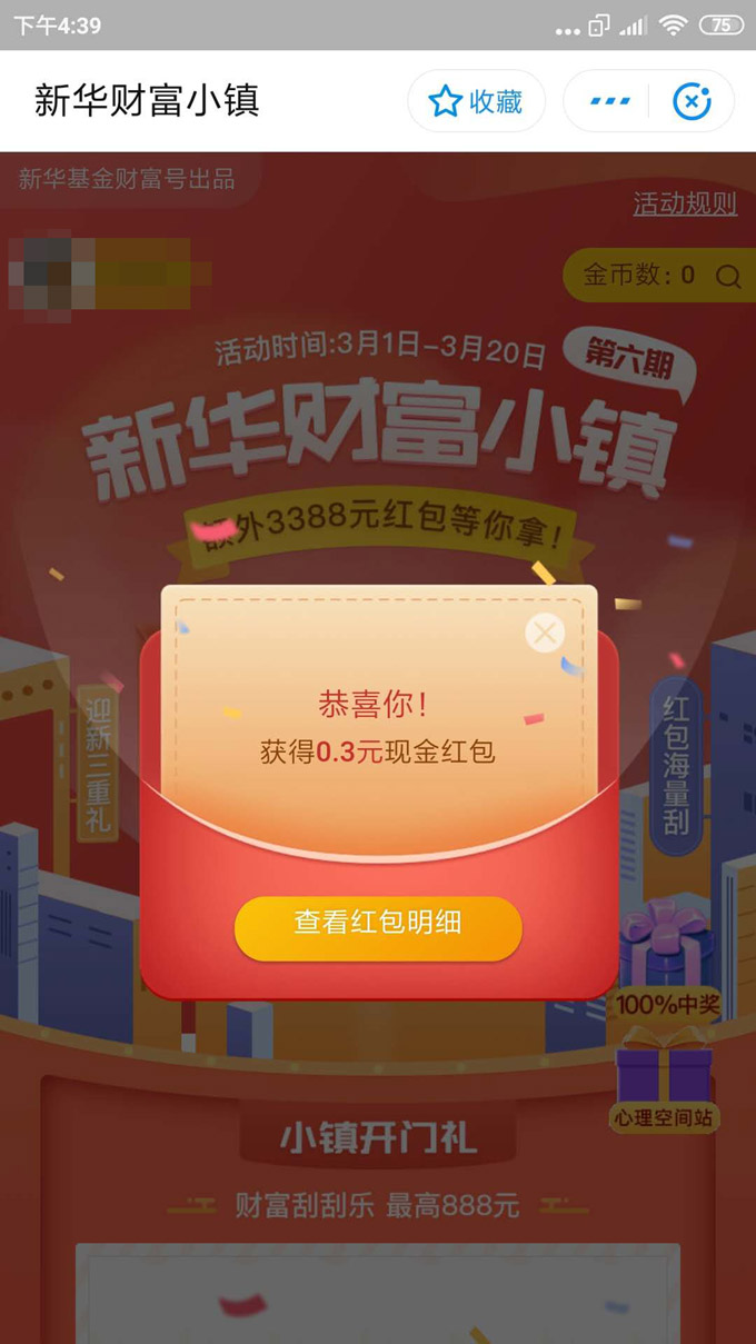 首页搜“新华财富小镇”,需首次弹出关注,刮一刮,7个工作日统一发放