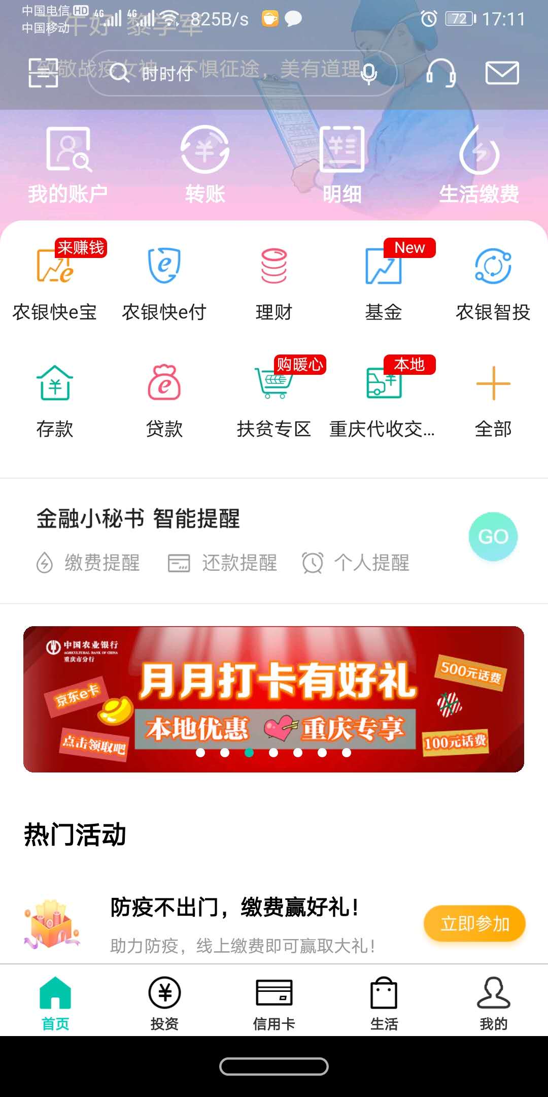 进入 农行 手机银行 按图片 来。。月月打卡-暖心口罩