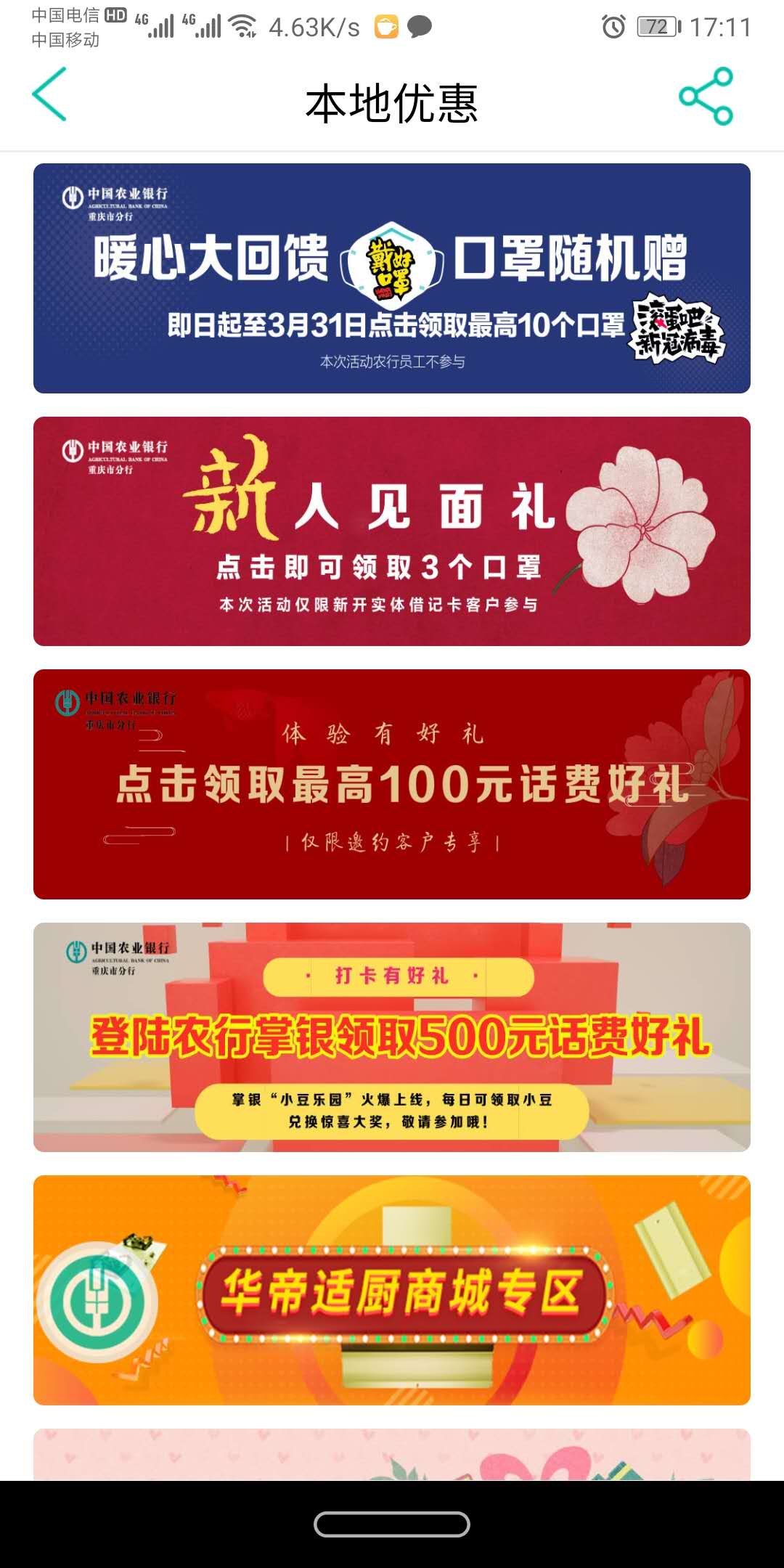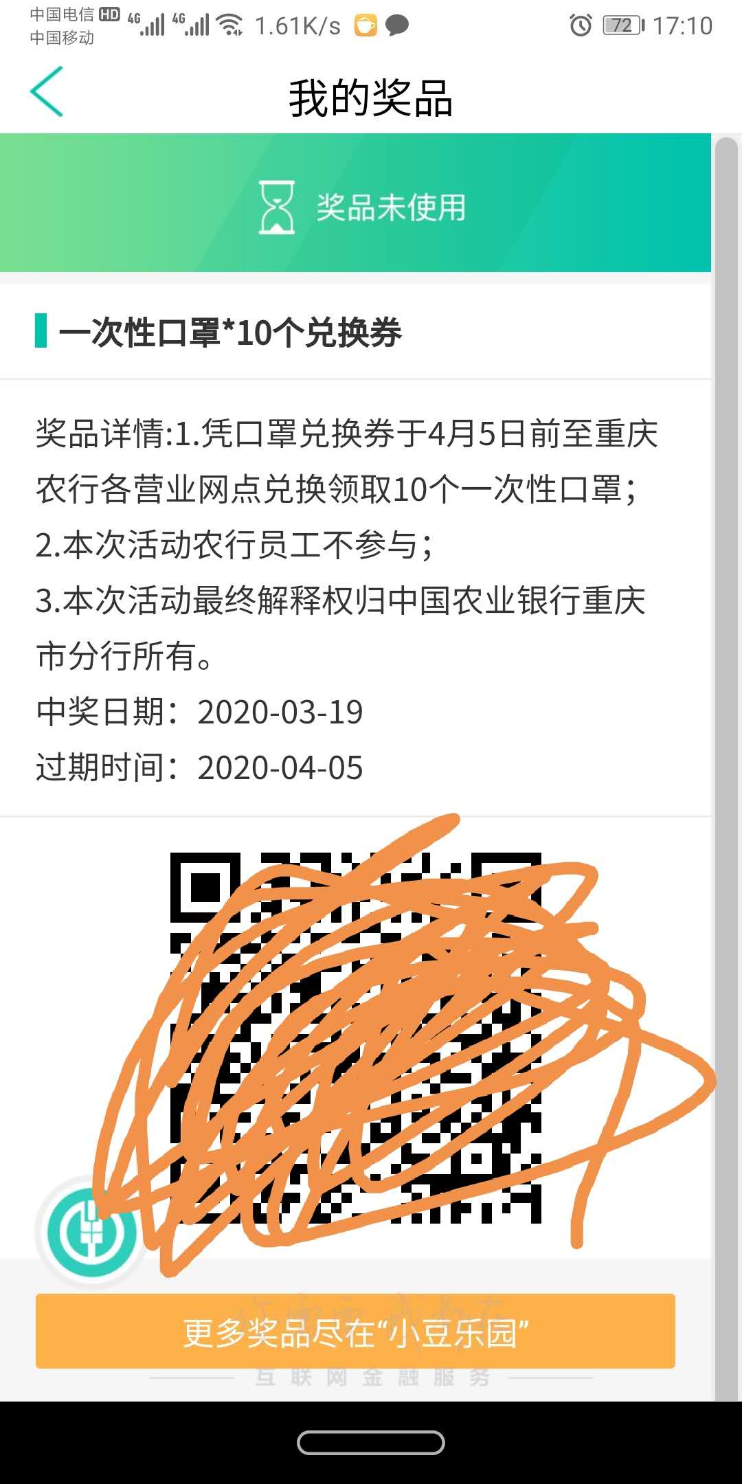 农行 送口罩了。。。。。。我中了十个