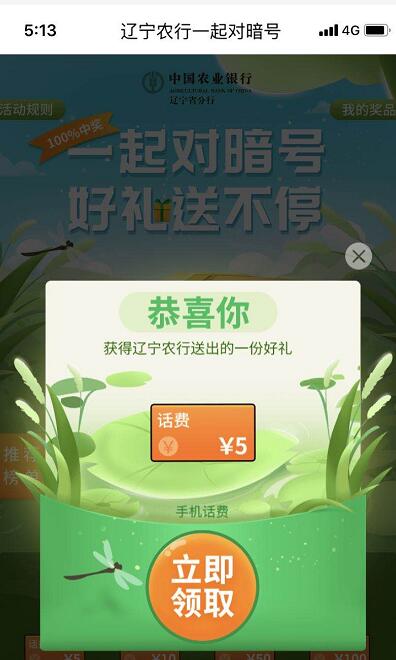 农行5话费 现在有水