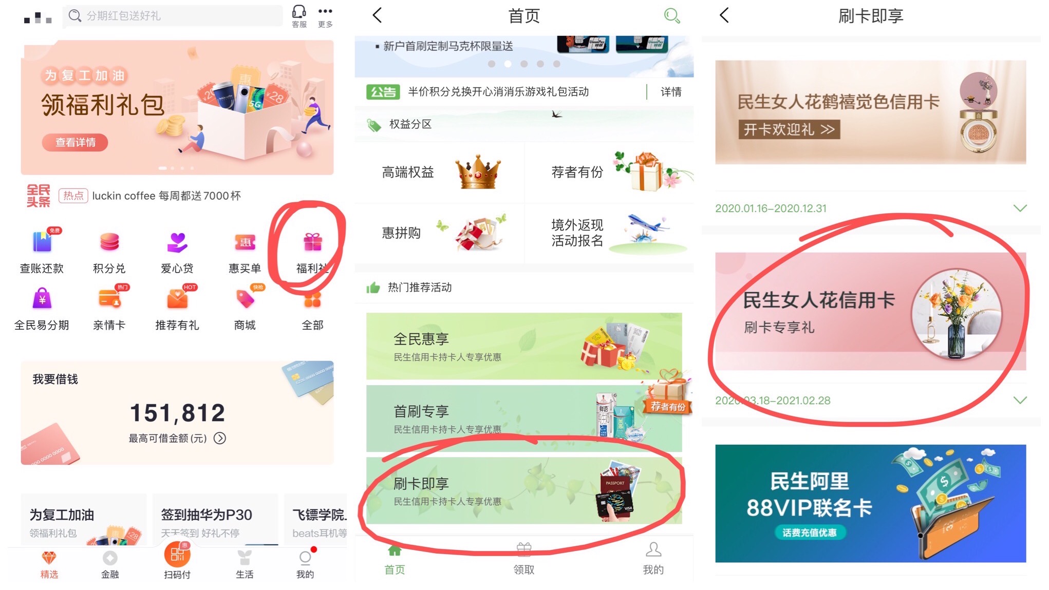 用女人花卡,每月消费6笔99元以上,可以获赠2个资质,兑换2次鲜花,每次扣10000积分。