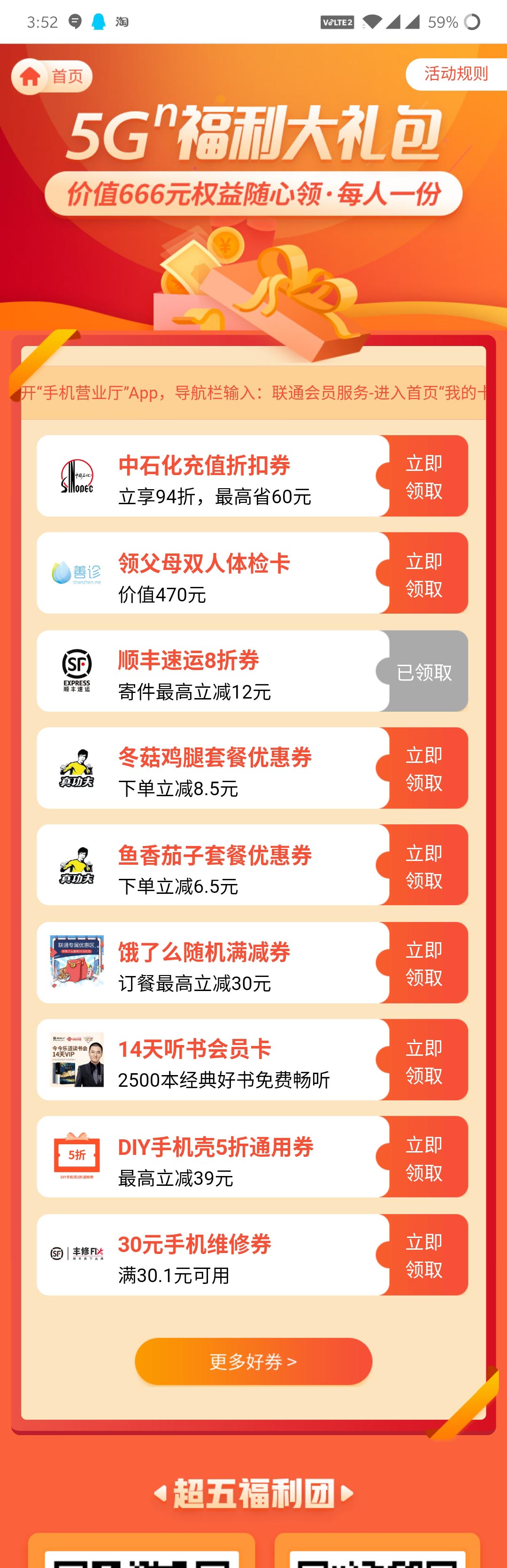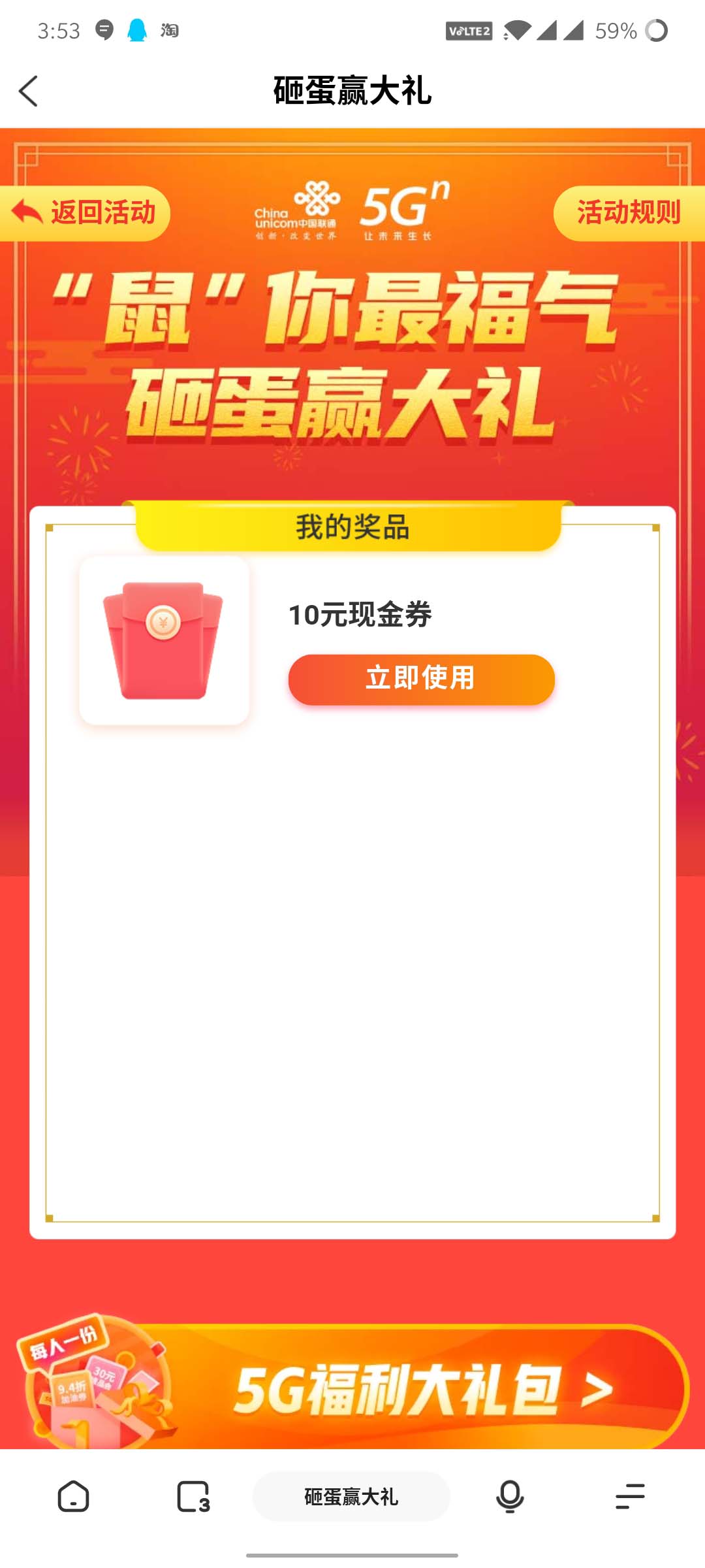 参与,奖品数量有限,福利先到先得。此外页面下方,还有限每人一份的价值666元的权益随心领5Gn福利大礼包,广东联通期待您的10分好评!【我的百倍用心,愿您10分满意】