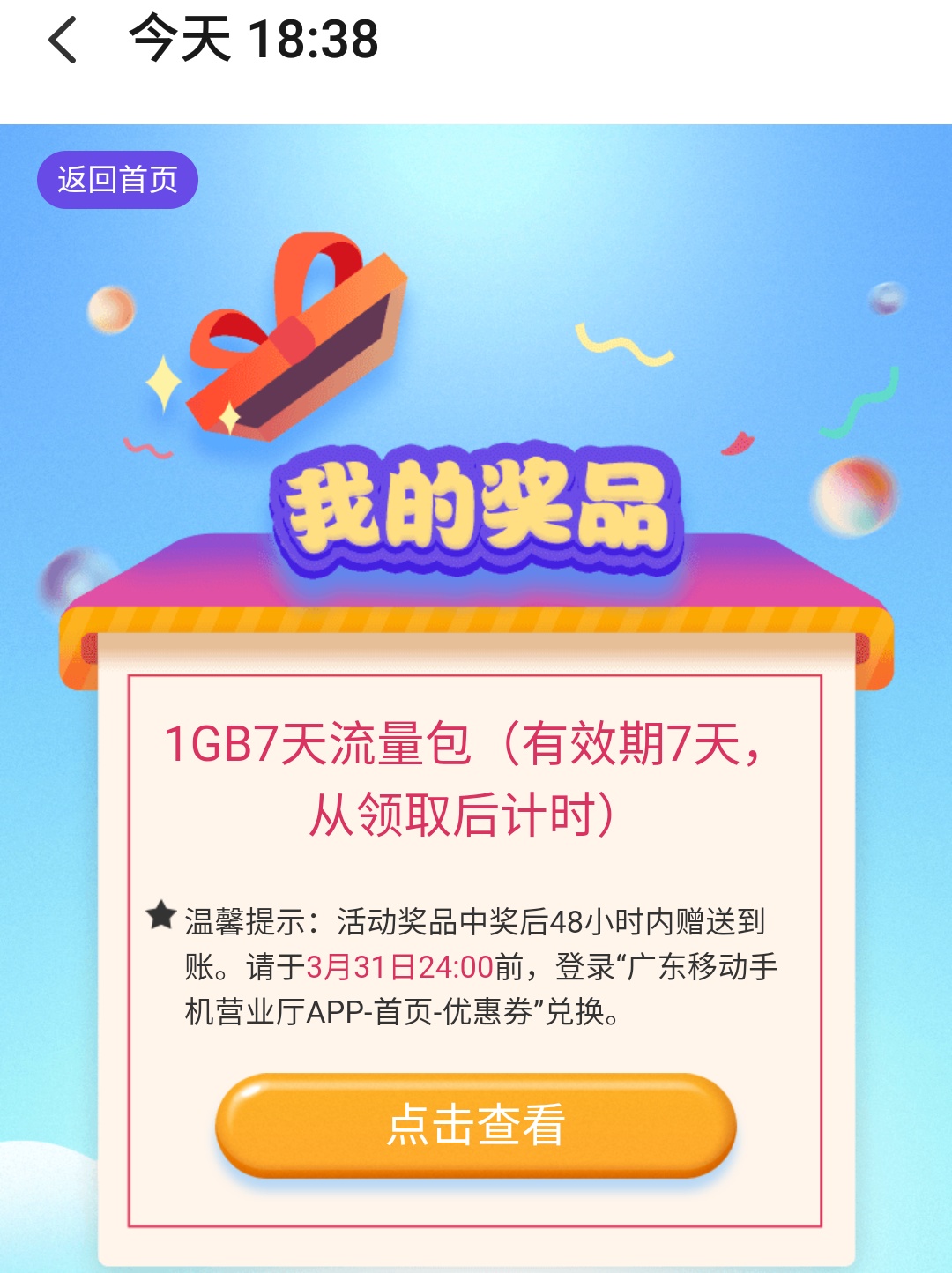 即可抽取您的专属礼品(流量/话费/观影券)。感恩有您,期待您的10分满意!【中国移动】