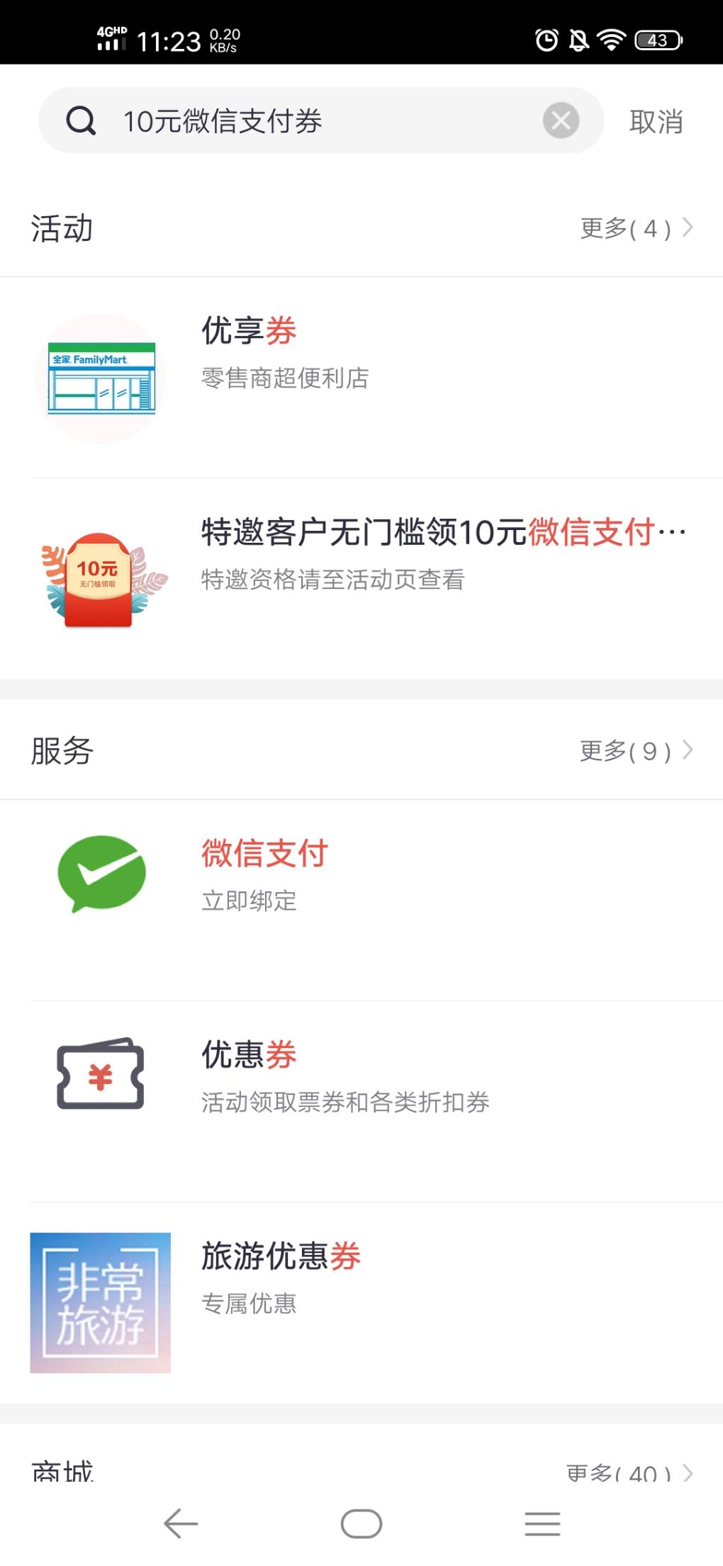 掌上生活,xin用卡首绑微信10元支付券