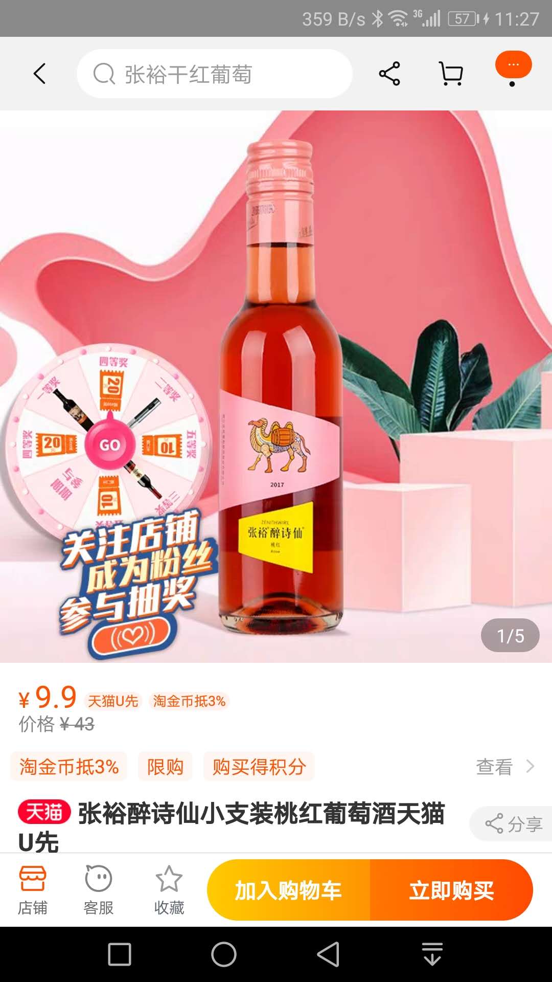 张裕醉诗仙小支装桃红葡萄酒9.9