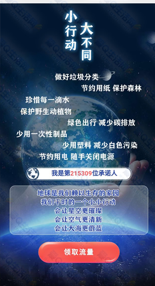 在活动中首次承诺保护地球可获得300MB流量