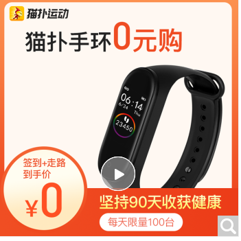 0元购买价值京东99元猫扑智能运动手环 每日打卡90天返还99元