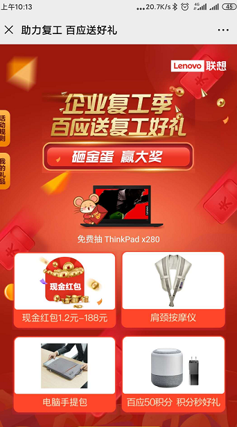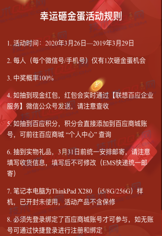 联想百应企业服务砸金蛋抽1.2-188元微信红包 每日红包数量有限