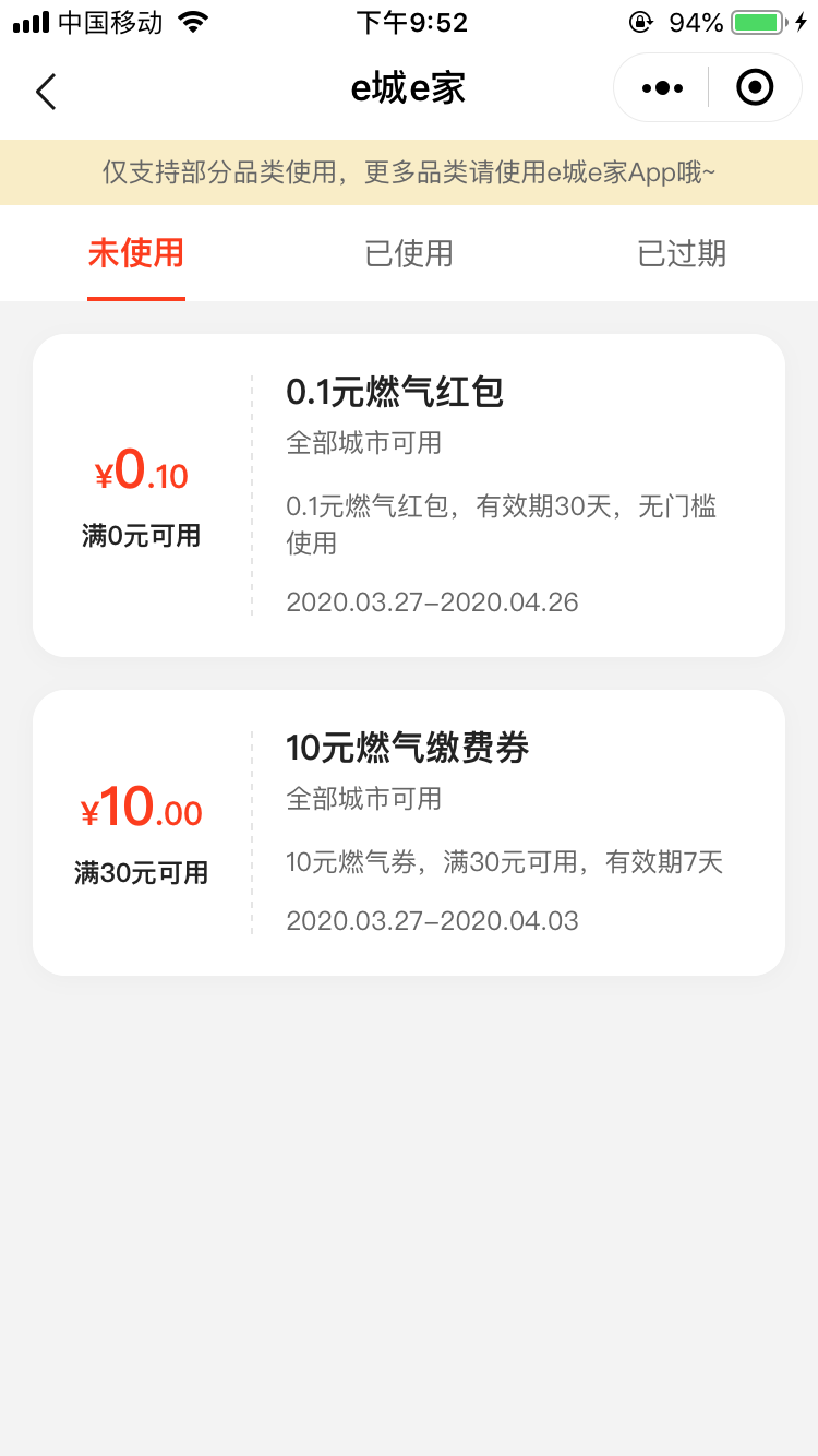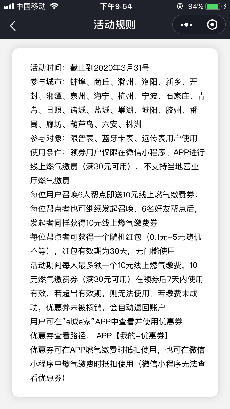微信搜 e城e家营业厅小程序 需6个人助理必得10元卷满30使用