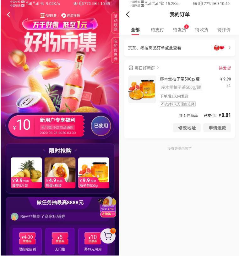 西瓜视频好物市集免费撸柚子茶纸抽等实物
