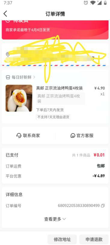 领到了券下单的人直接就有三次抽奖机会,有几率抽到5元的无门槛券,然后可以买个咸鸭蛋
