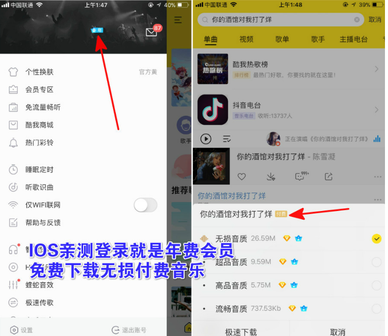 IOS酷我音乐年费VIP破解版
